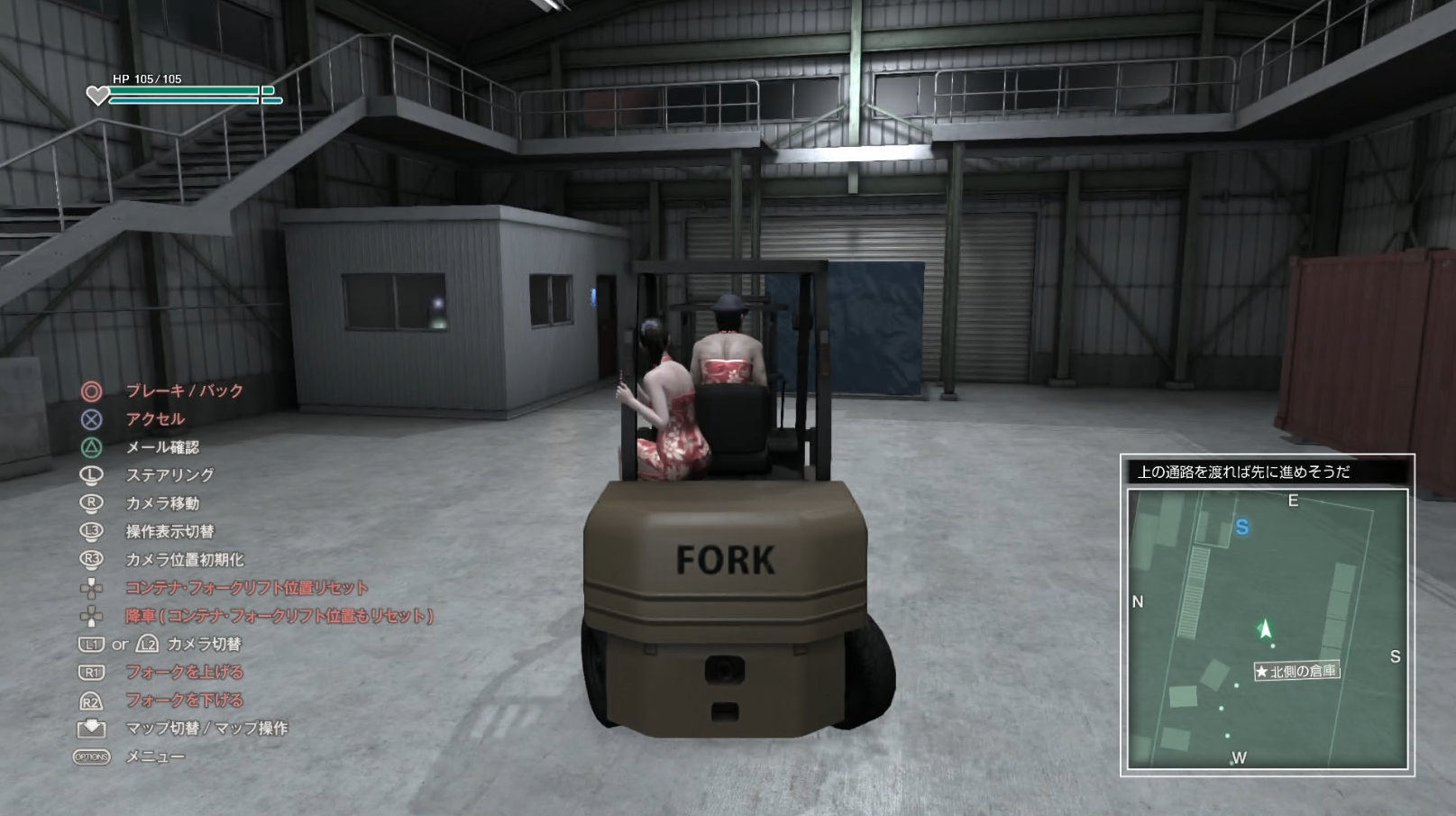 | 開始からすぐに武藤が追ってきている 道沿いに逃げ倉庫まで進む | ||